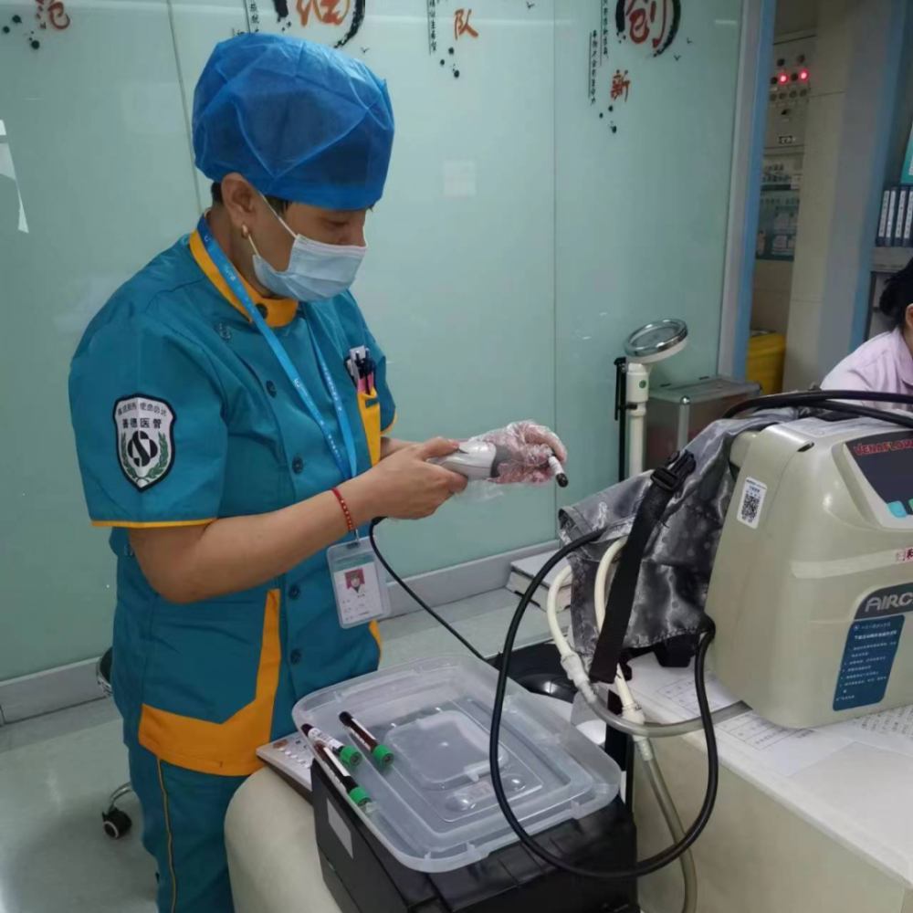 在運送休息室內,運送員手機端也不停地播報著“有新的訂單待接收”的接單語音提示。剛運送完上一單標本的運送員孫小蓮在接到系統(tǒng)派發(fā)的訂單后,迅速戴好口罩,領取了標本轉運箱,疾步趕往下一個派單科室,在等電梯的間隙,她還要時不時查看系統(tǒng)消息,確保不遺漏任何運送需求。不到5分鐘就到達了派單科室,進入科室前,需要嚴格消毒、測溫、登記。在標本窗口,快速準確核對信息,確認簽單,再次進行手部消毒,檢查標本是否完好,迅速裝入轉運箱,攜帶著標本急忙趕往接單科室,到達接單科室繼續(xù)消毒、簽單、交接標本,整個運送全程不超過20分鐘。剛運送完這一單,手機上已經提示又有新的訂單派發(fā),孫小蓮加快步伐繼續(xù)趕往下一個科室或病房。一天下來,運送訂單平均30余單,有時甚至更多。