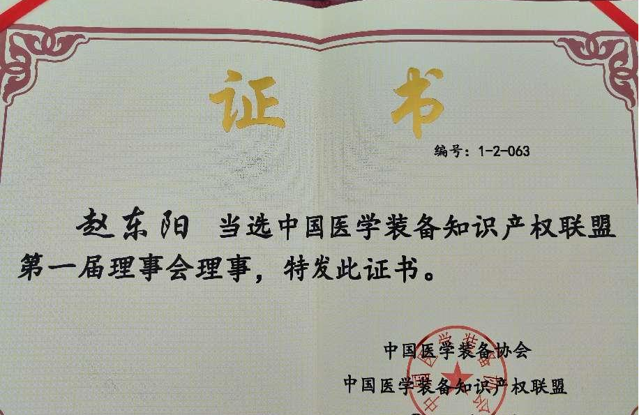 趙東陽(yáng)當(dāng)選中國(guó)醫(yī)學(xué)裝備知識(shí)產(chǎn)權(quán)聯(lián)盟第一屆理事會(huì)理事