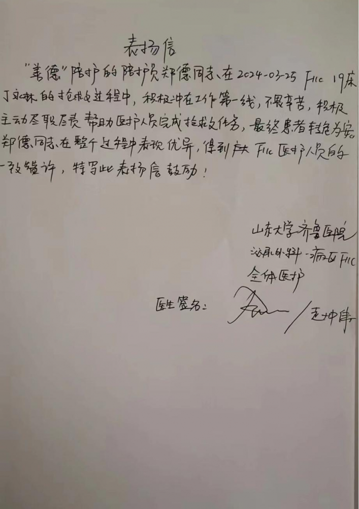 當(dāng)問到鄭德如何看待自己的這份工作時(shí),他說道:“這對(duì)我來說肯定是一份養(yǎng)家糊口的工作,但是陪護(hù)又很特殊,關(guān)系著病人的身體健康,是一個(gè)良心活,我們不僅要專業(yè),更要真正用心用情像家人一樣去照顧好患者,對(duì)患者和家屬負(fù)責(zé)”。